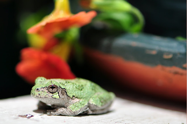 Here's the little Gray Tree Frog I found, he's the cutest little frog I've ever seen and actually changes colour from gray to green and black to white.